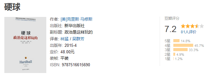 “硬球”是本书独创的一个寓意深刻的概念,它在本书中既指政界人物为了胜出、权力和成就,而展开的讲求实际、大胆出击、不畏艰难、“过关斩将”的竞争游戏,也指他们进行这种“硬碰硬”或者说“打硬战”的激烈游戏时,所使用的各种巧妙有力的手段与技巧。 在马修斯看来,世界就是一个大球场,或者说许多球场,只有那些能玩硬球的人才能成功。一个人如果掌握了硬球游戏的法则,在这个日常生活充满了政治权谋的世界,他就能赢得一席之地,并且发达辉煌。“硬球”既硬又圆,用来喻指大人物们的游戏和手段确实再恰当不过了。
